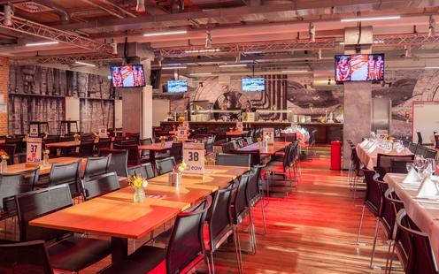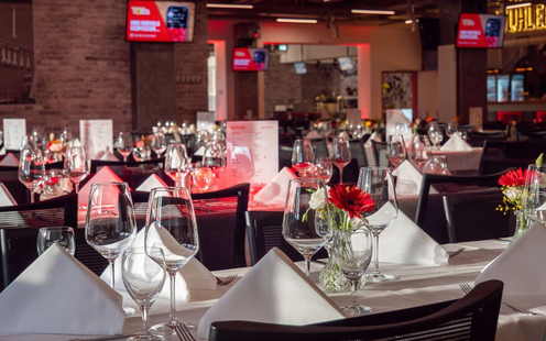 Bedienen sie sich vor, während und nach dem Spiel an unserem vielfältigen Buffet. Auch für unsere vegetarischen Gäste ist Bestens gesorgt. Neben zahlreichen Vorspeisen, Hauptgerichten und Desserts stehen ihnen Halbzeitsnacks bzw. Fingerfood zur Verfügung.
