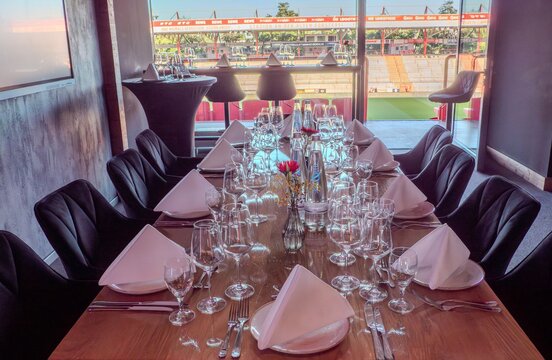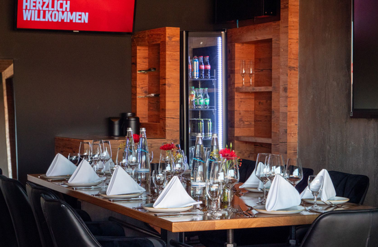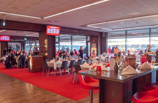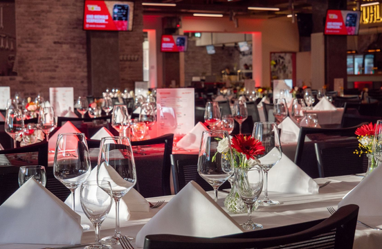 Klassich, hochwertige Einrichtung, kombiniert mit einem außergewöhnlichen Raumkonzept, dass Ihnen den direkten Blick auf das Spielfeld aus dem VIP-Bereich gewährt.